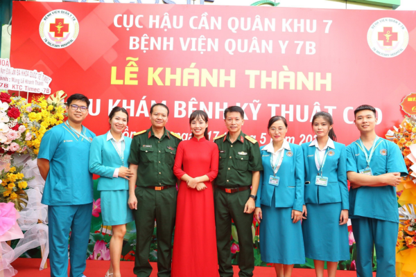 Đội ngũ nhân viên Khánh Trần và Khu khám bệnh viện Kỹ thuật cao 7B chụp hình