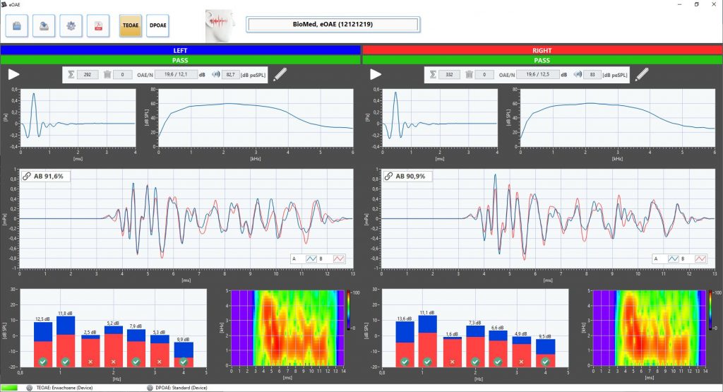 | Cường độ âm kích thích: | TEOAE 40-90 dB peSPL |